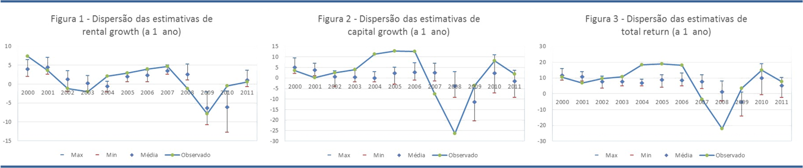 Em traços gerais, a capacidade de previsão em Novembro para o desempenho do mercado do imobiliário comercial no ano seguinte é bastante reduzida (Figura 3). Se a previsão do